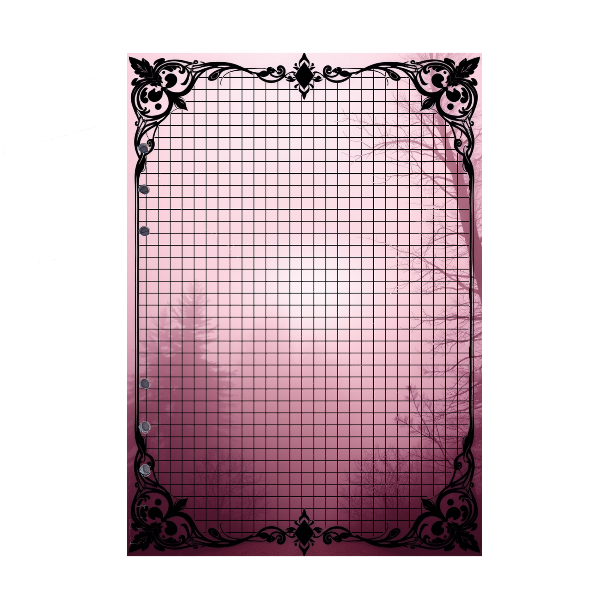Das Mystic Fog 64-Design zeigt eine geheimnisvolle Waldlichtung, die von Tannen und kahlen Laubbäumen umgeben ist. Der kräftige Dunkelpink und der dichte Nebel verleihen dieser Szene eine fast magische, beruhigende Wirkung, die Ihre Notizen und Ideen in einer tiefen und inspirierenden Atmosphäre festhält.