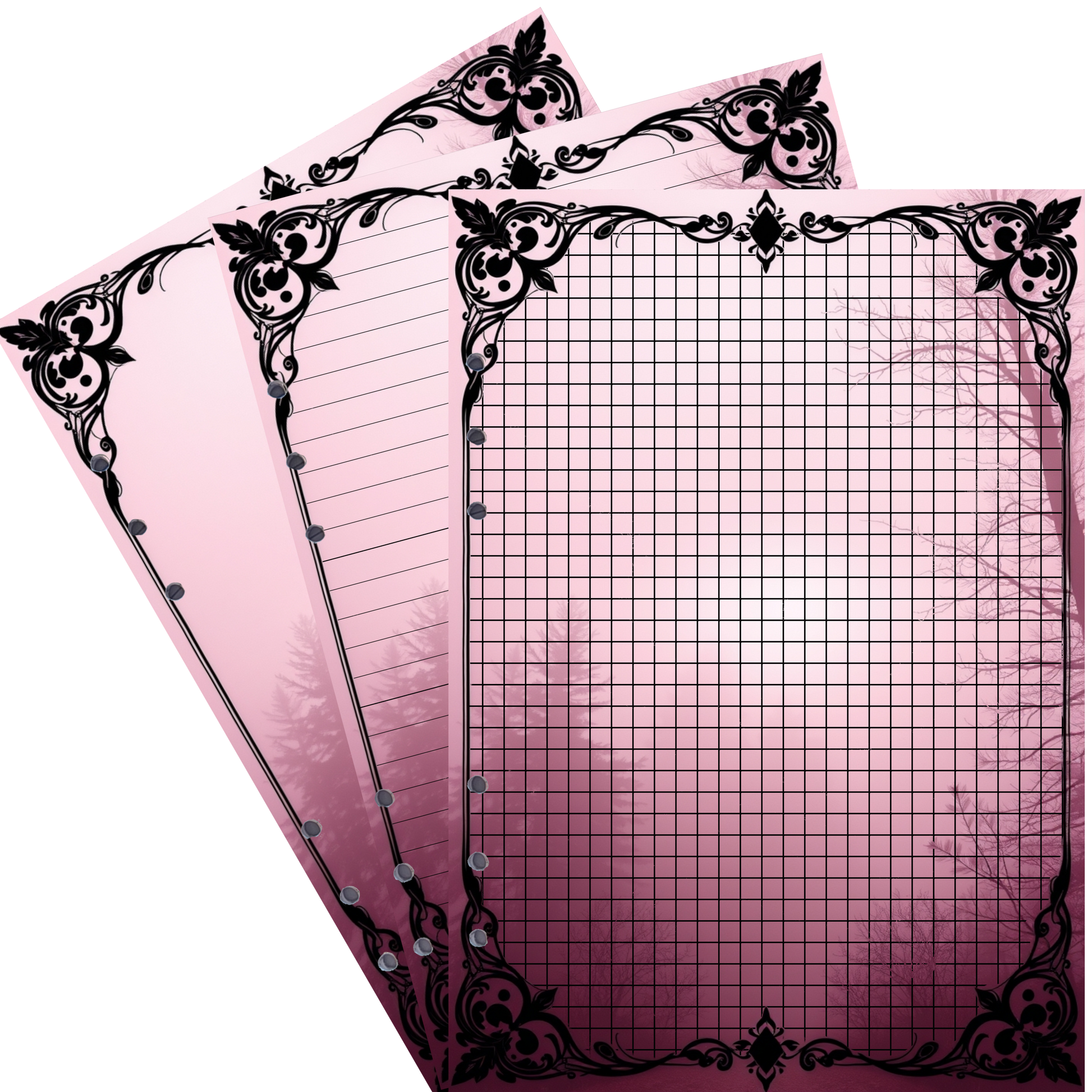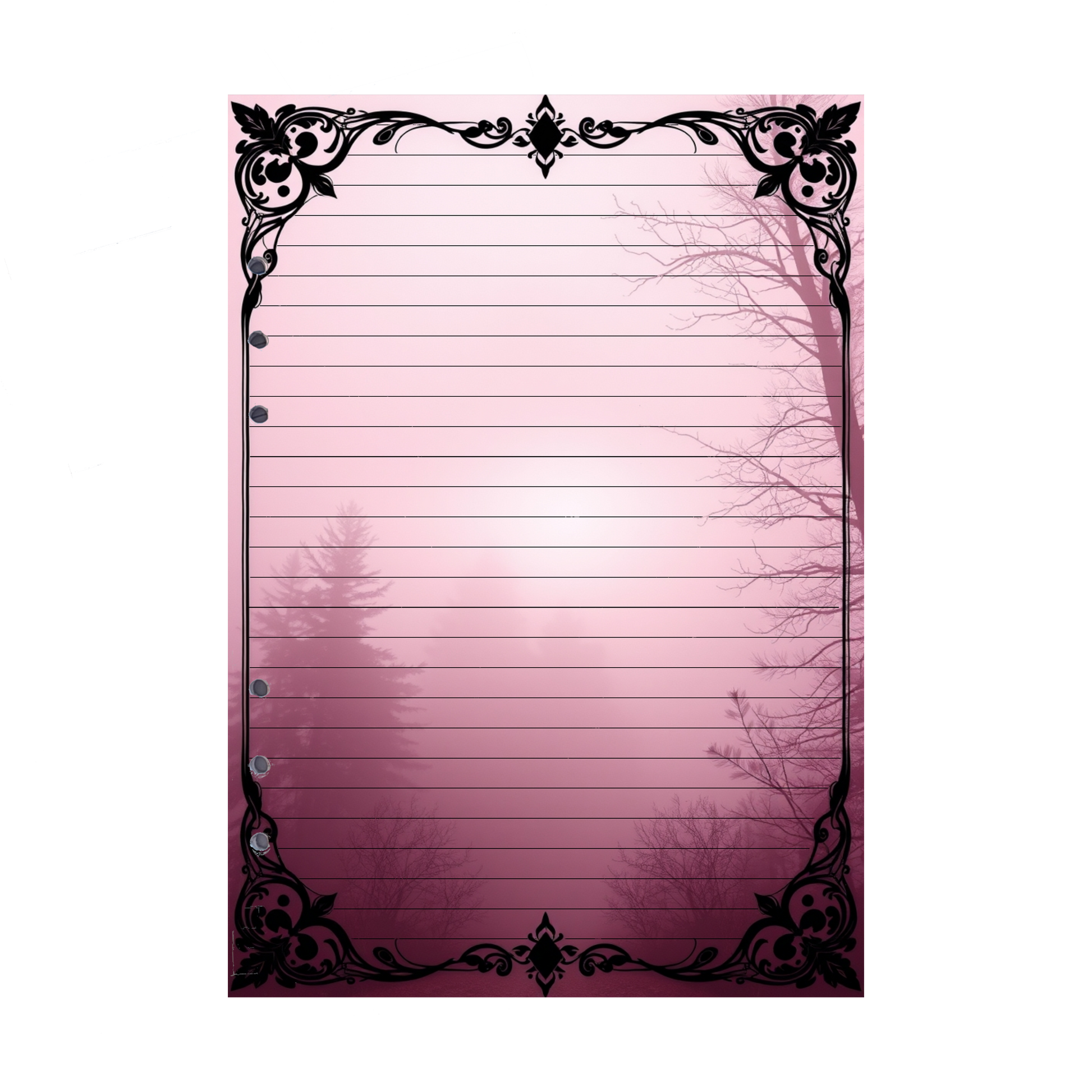 Lassen Sie sich von der geheimnisvollen Stimmung einer tiefen Waldlichtung verzaubern mit unseren exklusiven DIN A5 Ringbucheinlagen im Mystic Fog 64-Design. Diese Szene zeigt eine Lichtung im Wald, die tief in dichten Nebel gehüllt ist. Umringt von majestätischen Tannen und kahlen Laubbäumen, die eine mystische Atmosphäre schaffen, wird das Bild von einem kräftigen Dunkelpink dominiert, das die Szenerie in ein beinahe surreales Licht taucht. Ideal für all jene, die ihre Gedanken und Kreativität in einer kraftvollen und geheimnisvollen Umgebung festhalten möchten.