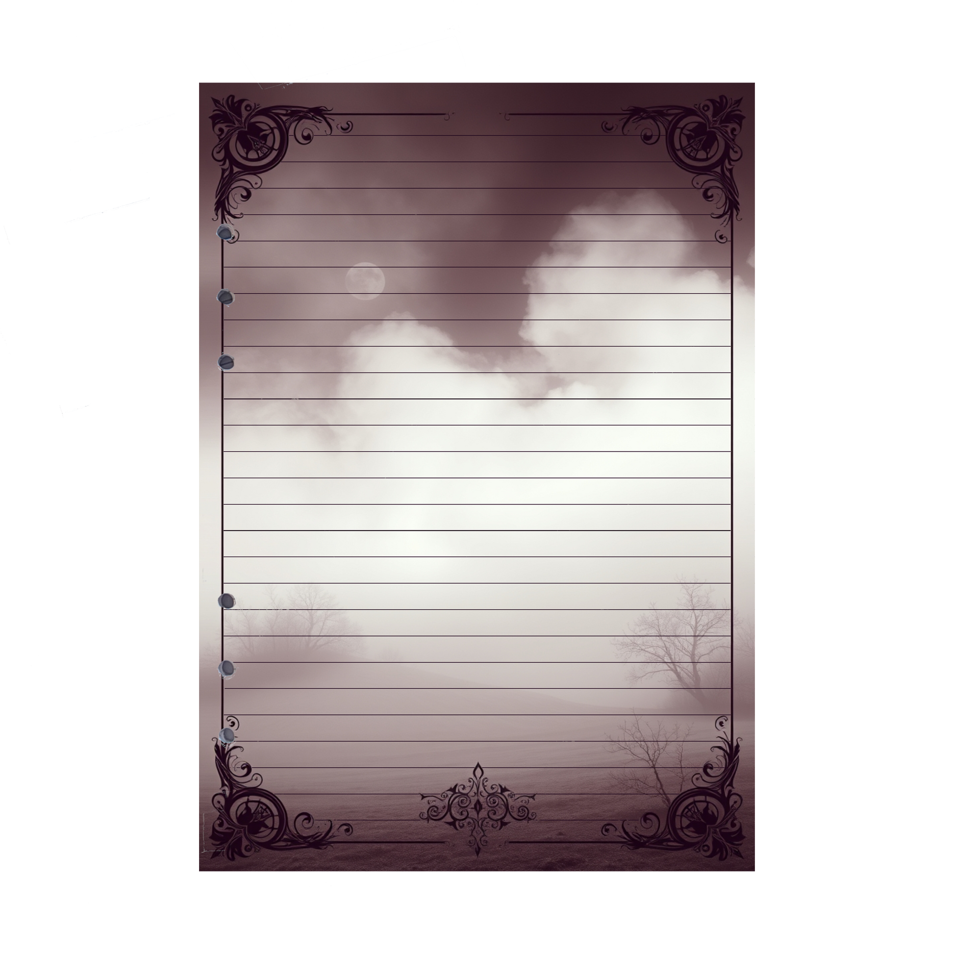 Das Mystic Fog 65-Design zeigt ein ruhiges Feld unter dem Licht des Vollmonds. Die warmen Brauntöne und das mystische Mondlicht verleihen der Szene eine besondere Beruhigung, die Ihre Notizen in eine friedliche und kreative Atmosphäre taucht.