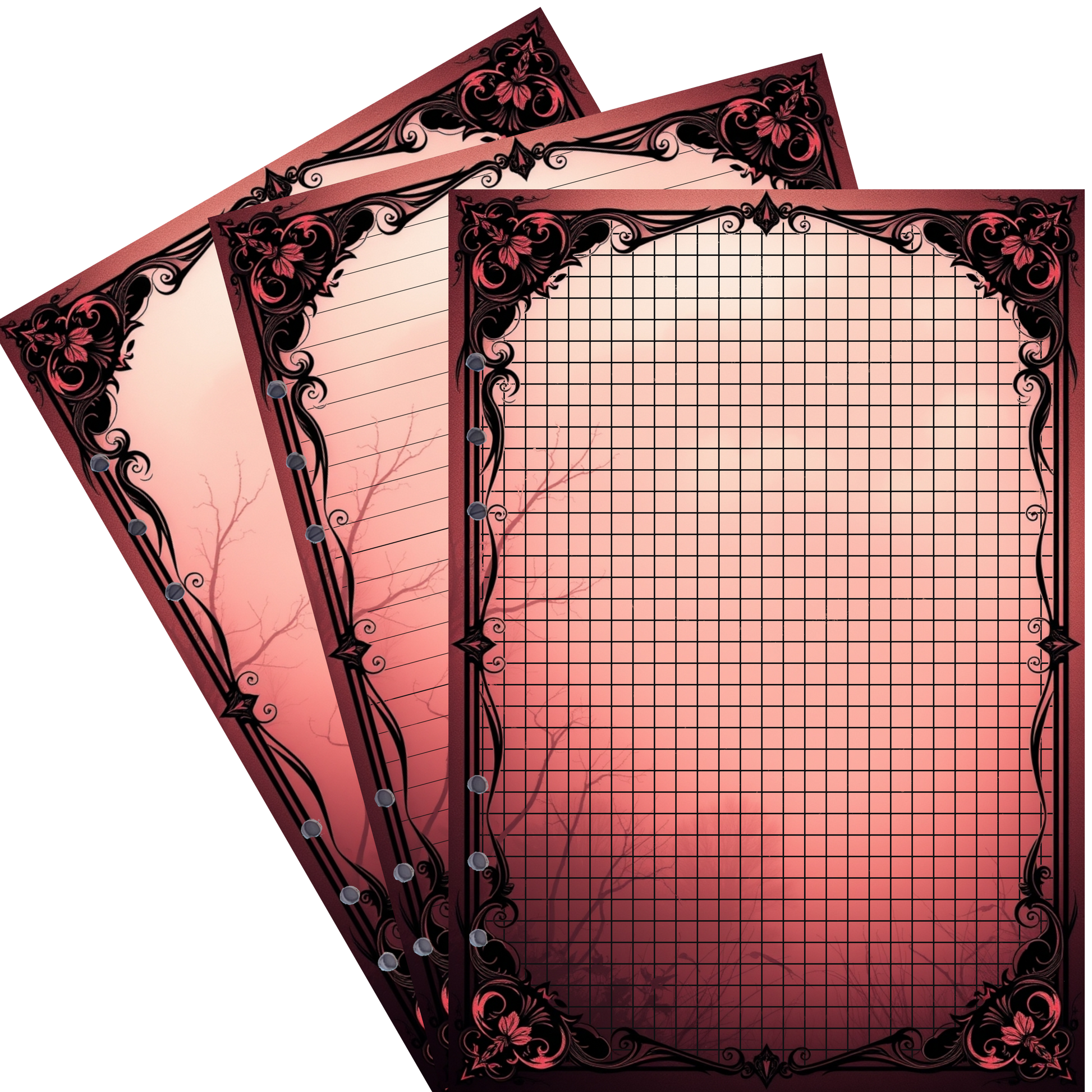 Tauchen Sie ein in eine geheimnisvolle, beinahe magische Landschaft mit unseren exklusiven DIN A5 Ringbucheinlagen im Mystic Fog 68-Design. Durch einen dichten, weinroten Nebel hindurch erblickt man eine Wiese, die in einen Wald übergeht. Das gesamte Bild ist in tiefen, dunklen Rottönen gehalten und vermittelt eine faszinierende, fast mystische Atmosphäre, die perfekt geeignet ist, um Ihre Gedanken, Skizzen und Ideen in einer besonders inspirierenden Umgebung festzuhalten.
