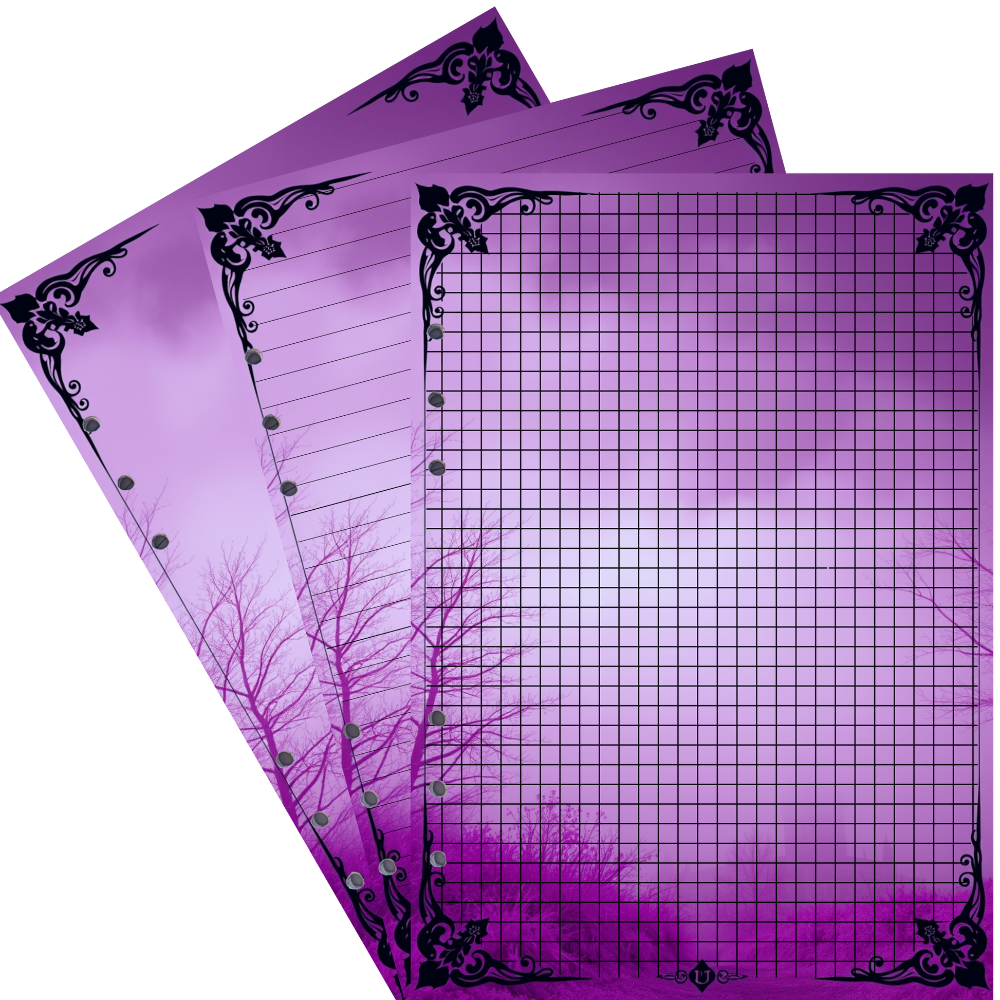 Erweitern Sie Ihr Ringbuch mit unseren DIN A5 Ringbuch-Nachfüllseiten im Mystic Fog 84-Design und lassen Sie sich von der geheimnisvollen, lilafarbenen Welt des Nebels und der verlassenen Burg inspirieren! Bestellen Sie jetzt und bringen Sie einen Hauch von Mystik in Ihre Notizen. 🏰🌫️💜 #MysticFog #DINA5Nachfüllseiten #RingbuchZubehör
