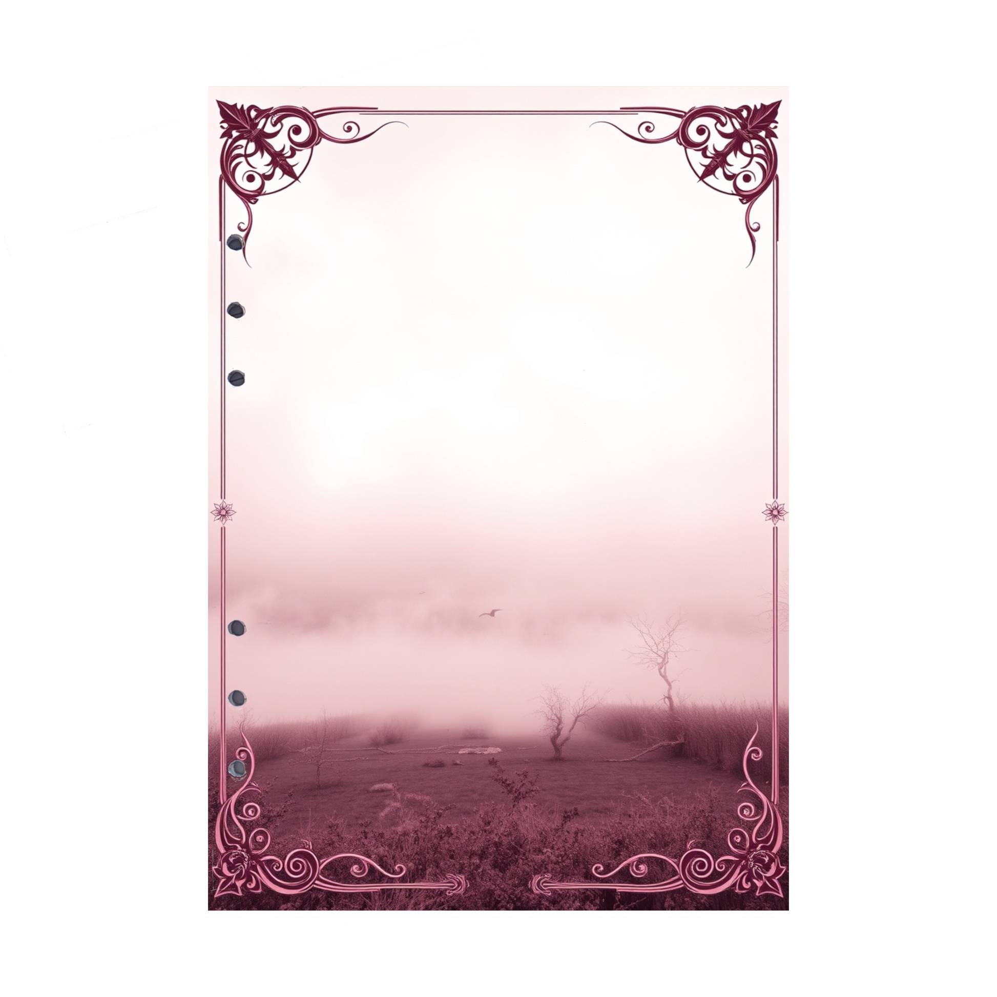 Tauchen Sie ein in eine sanfte, fast magische Atmosphäre mit unseren exklusiven DIN A5 Ringbucheinlagen im Mystic Fog 88-Design. Das Motiv zeigt eine schmale Wiese, die von kleinen Sträuchern gesäumt ist. Die Farbpalette in sanftem Altrosé verleiht der Szene eine beruhigende, nostalgische Stimmung – ideal, um Ihre Gedanken in einer ruhigen und inspirierenden Umgebung festzuhalten.