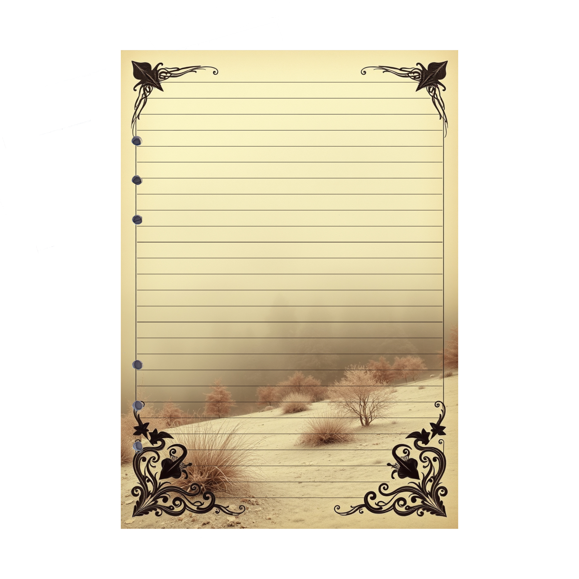 - Elegantes Design: Die sanften Gelb- und Sandtöne sowie die mystische Nebelstimmung verleihen Ihren Notizen eine ruhige, naturnahe Atmosphäre.