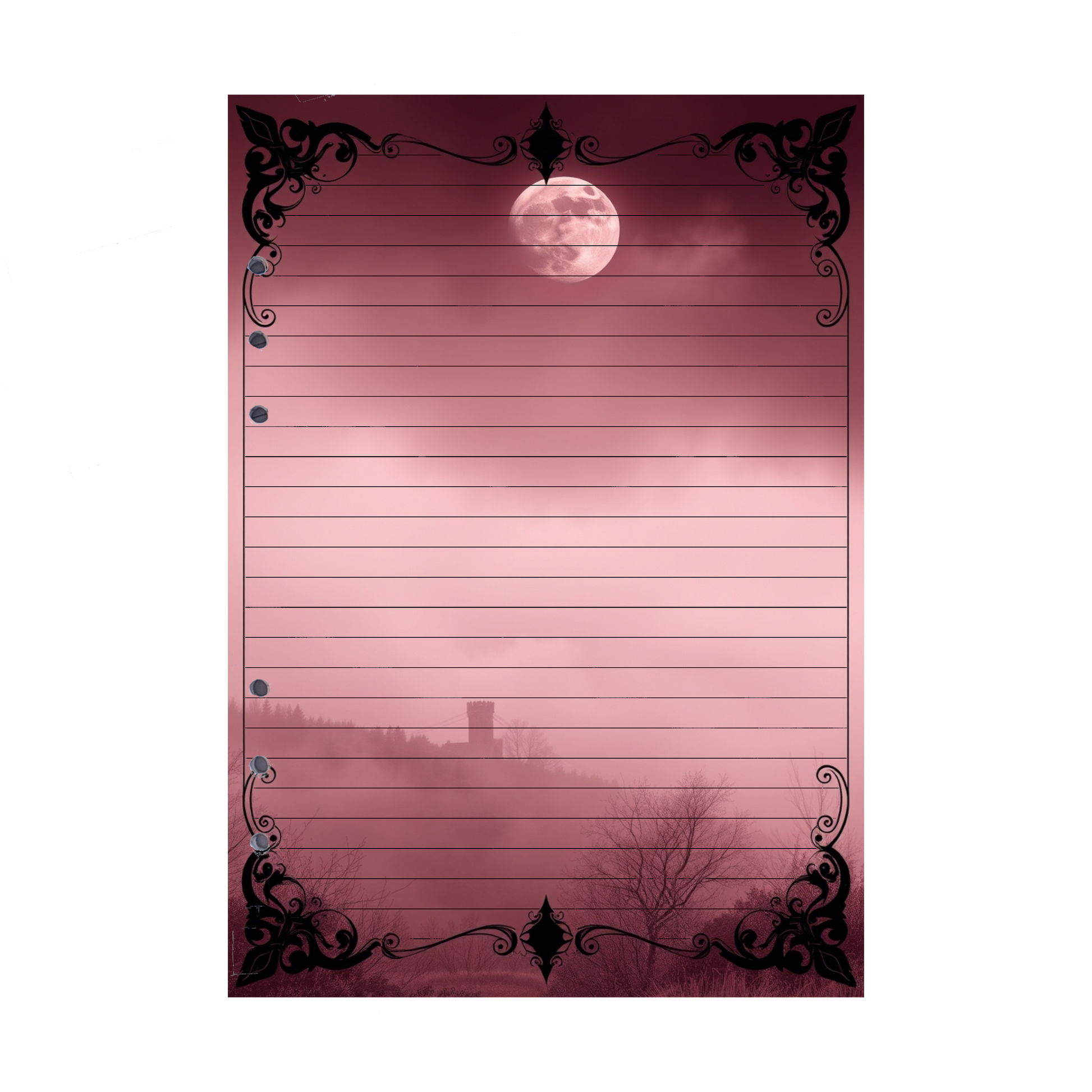 - Elegantes Design: Der Nebel und die alte Burg im Hintergrund, gepaart mit den warmen Rosa- und Burgundtönen, verleihen Ihren Notizen eine besonders geheimnisvolle und inspirierende Atmosphäre.