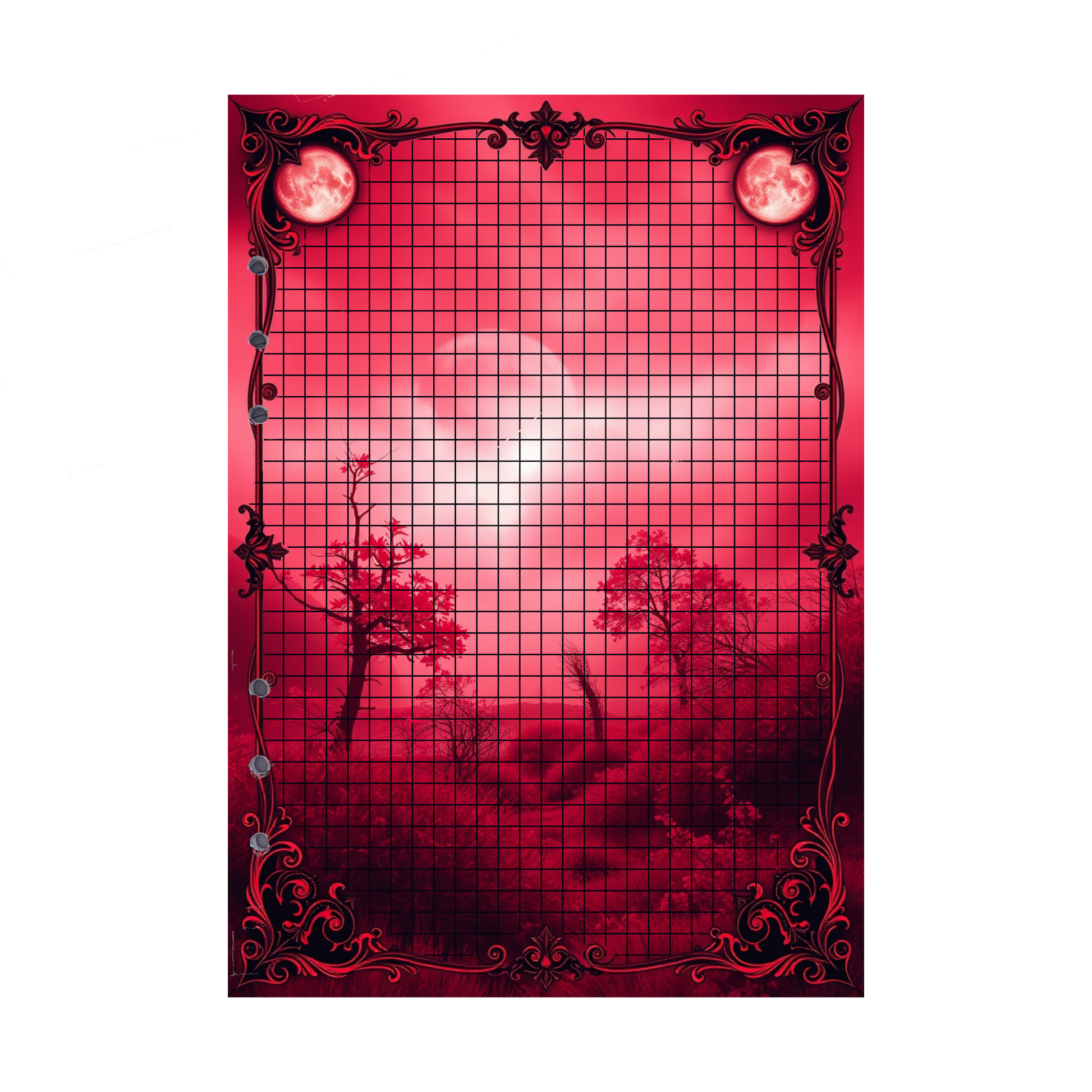 Lassen Sie sich von der geheimnisvollen Atmosphäre einer intensiven Vollmondnacht verzaubern. Das Mystic Fog 94-Design im DIN A5-Format fängt das leuchtende, grelle Rot eines Vollmonds ein, der einen schmalen Weg zwischen Büschen und Sträuchern erhellt. Diese mystische Szenerie bietet die perfekte Kulisse für Ihre Gedanken und Notizen.