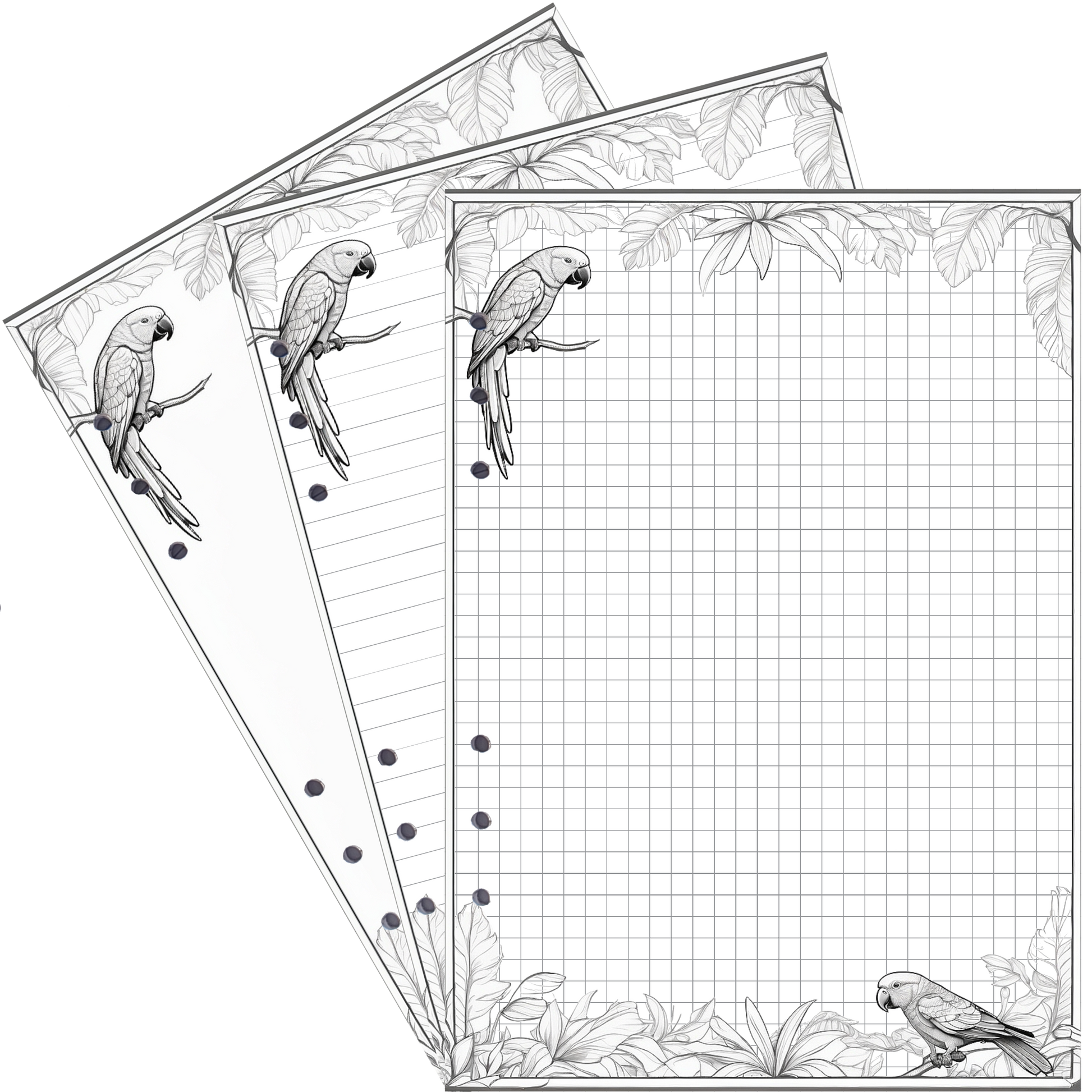 Bringen Sie Farbe und Inspiration in Ihre Notizen mit den „Papagei 3“ DIN A5 Nachfüllseiten. Bestellen Sie noch heute und lassen Sie sich zu neuen Ideen und Projekten inspirieren!