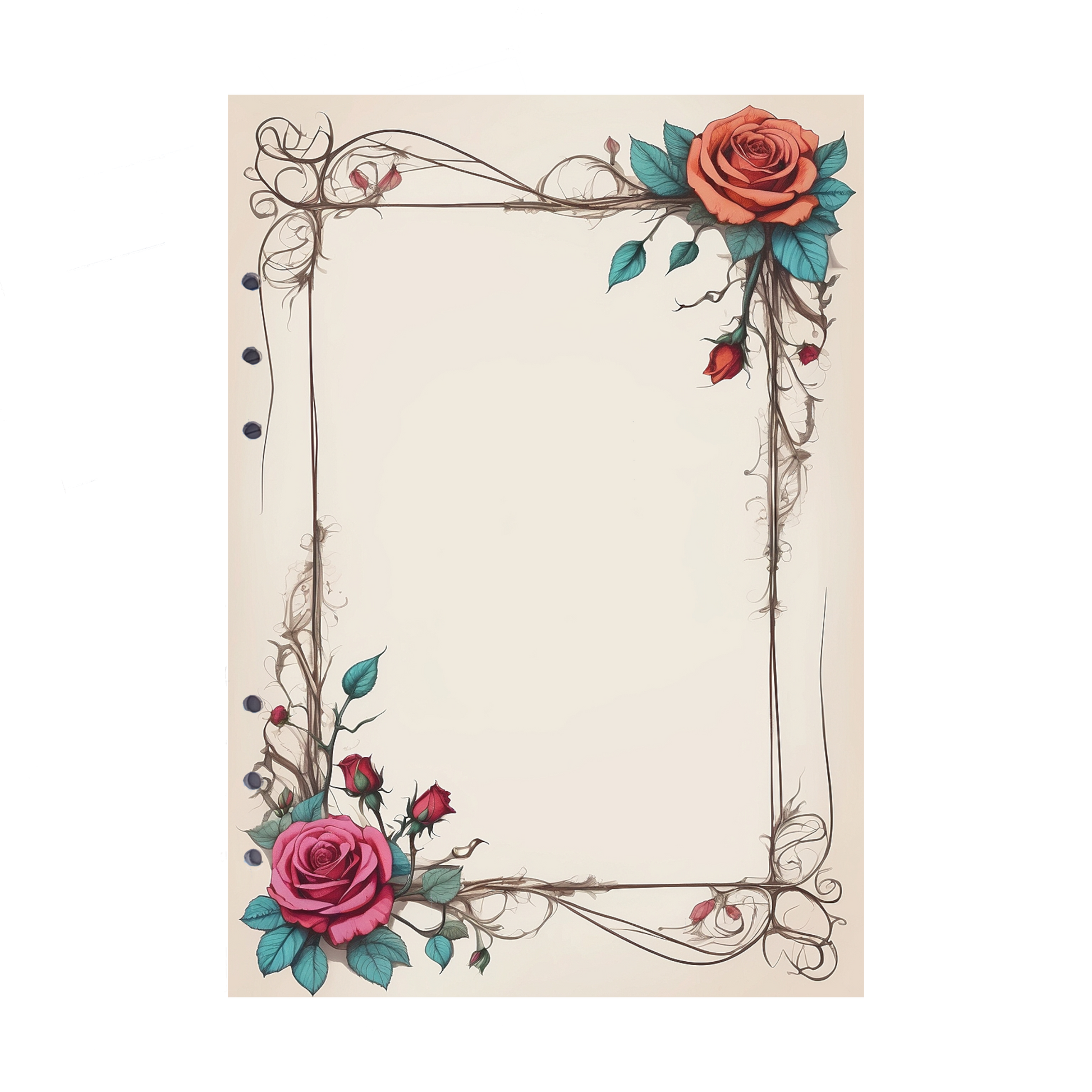 Halten Sie Ihre Notizen stilvoll auf den liebevoll gestalteten Ringbucheinlagen fest, die mit einer wunderschönen orange und weinroten Rose verziert sind, verbunden über einen großzügig verzweigten Rand. Unser exklusives Sortiment an DIN A5 Ringbuch Nachfüllseiten bietet Ihnen eine elegante und inspirierende Note für Ihre Aufzeichnungen.