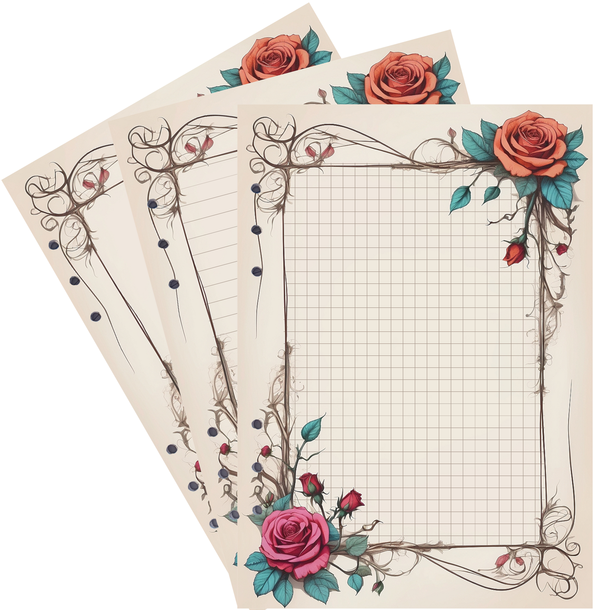 DIN A5 Ringbuch Nachfüllseiten im Rosen-Design "Rose 1"