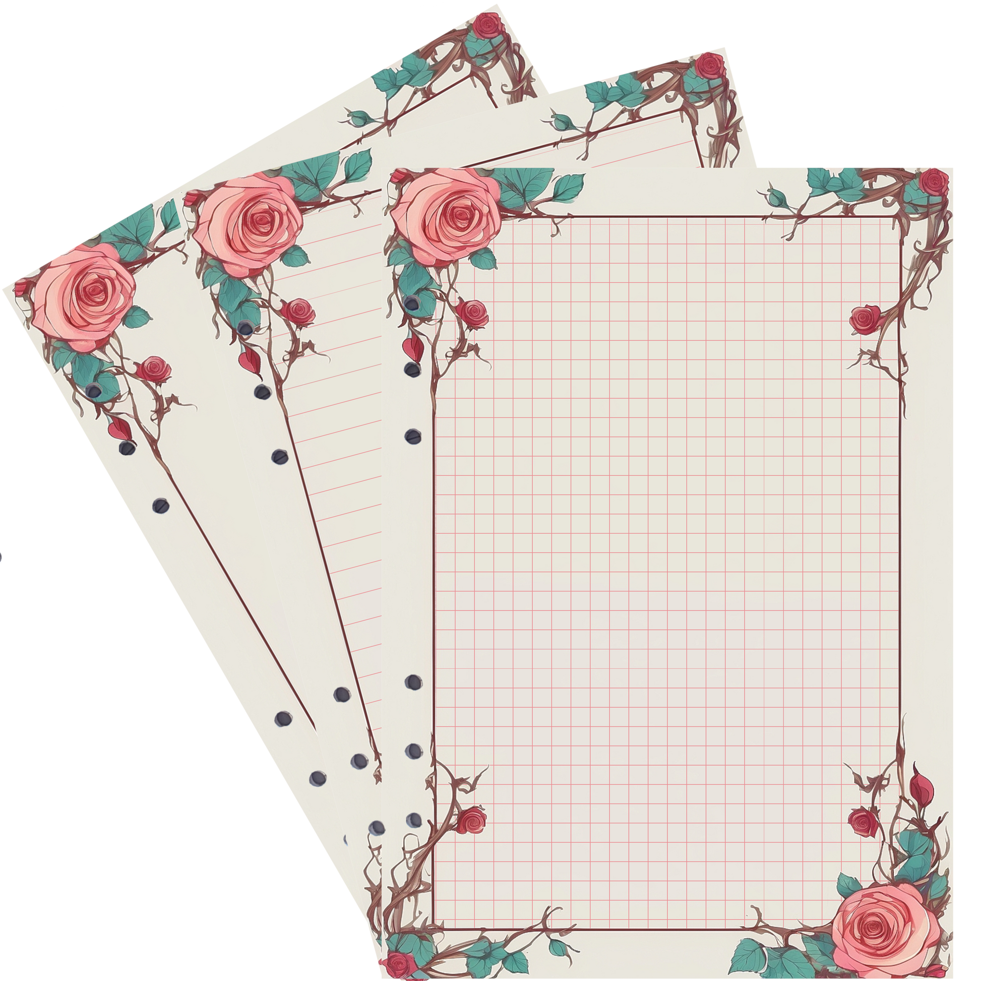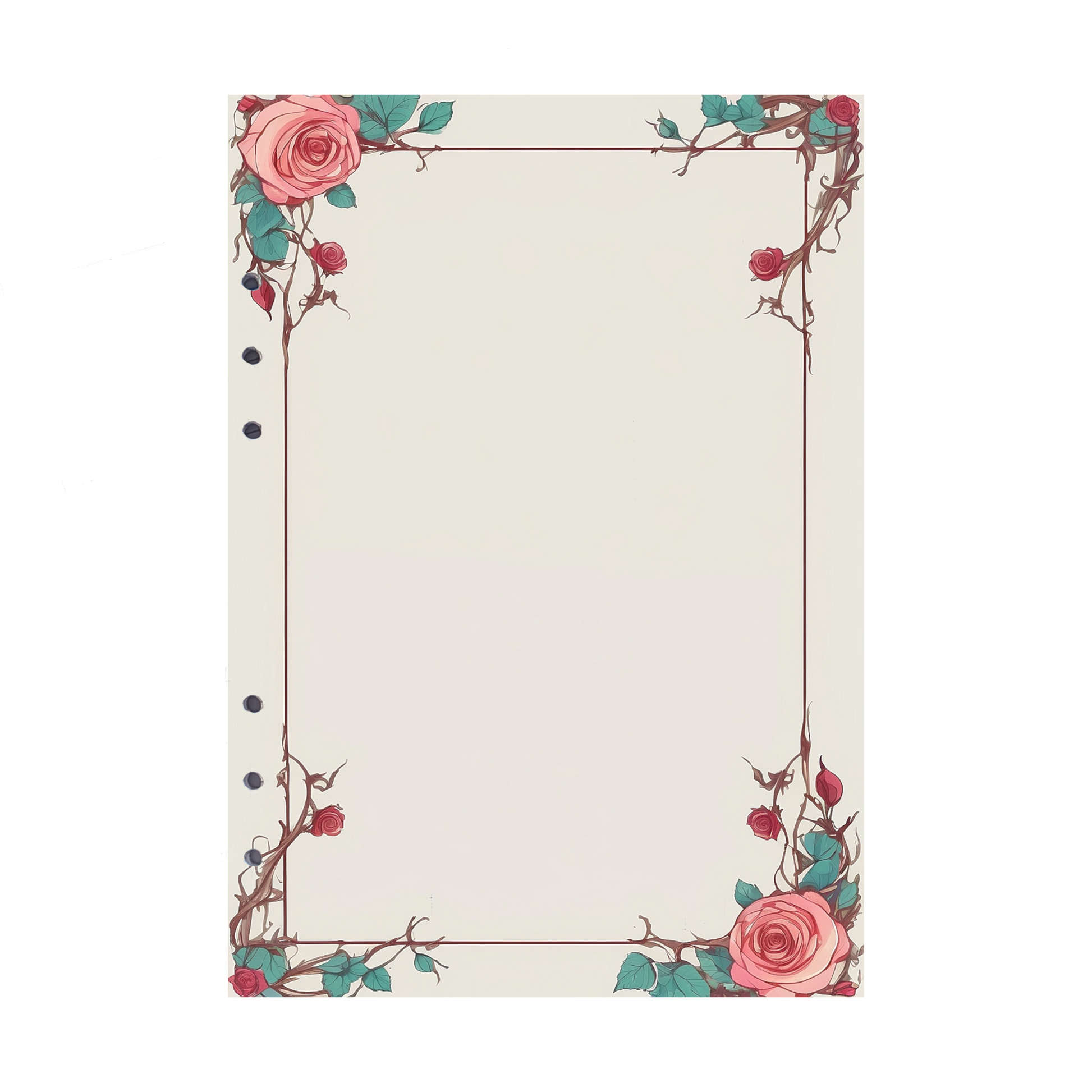 Verleihen Sie Ihren Notizen eine blumige Eleganz mit unseren DIN A5 Nachfüllseiten im zauberhaften "Rose 17"-Design. Ein breiter Rand mit rosa Blüten oder dunkelrosa Knospen in allen Ecken sorgt für eine romantische und inspirierende Note.