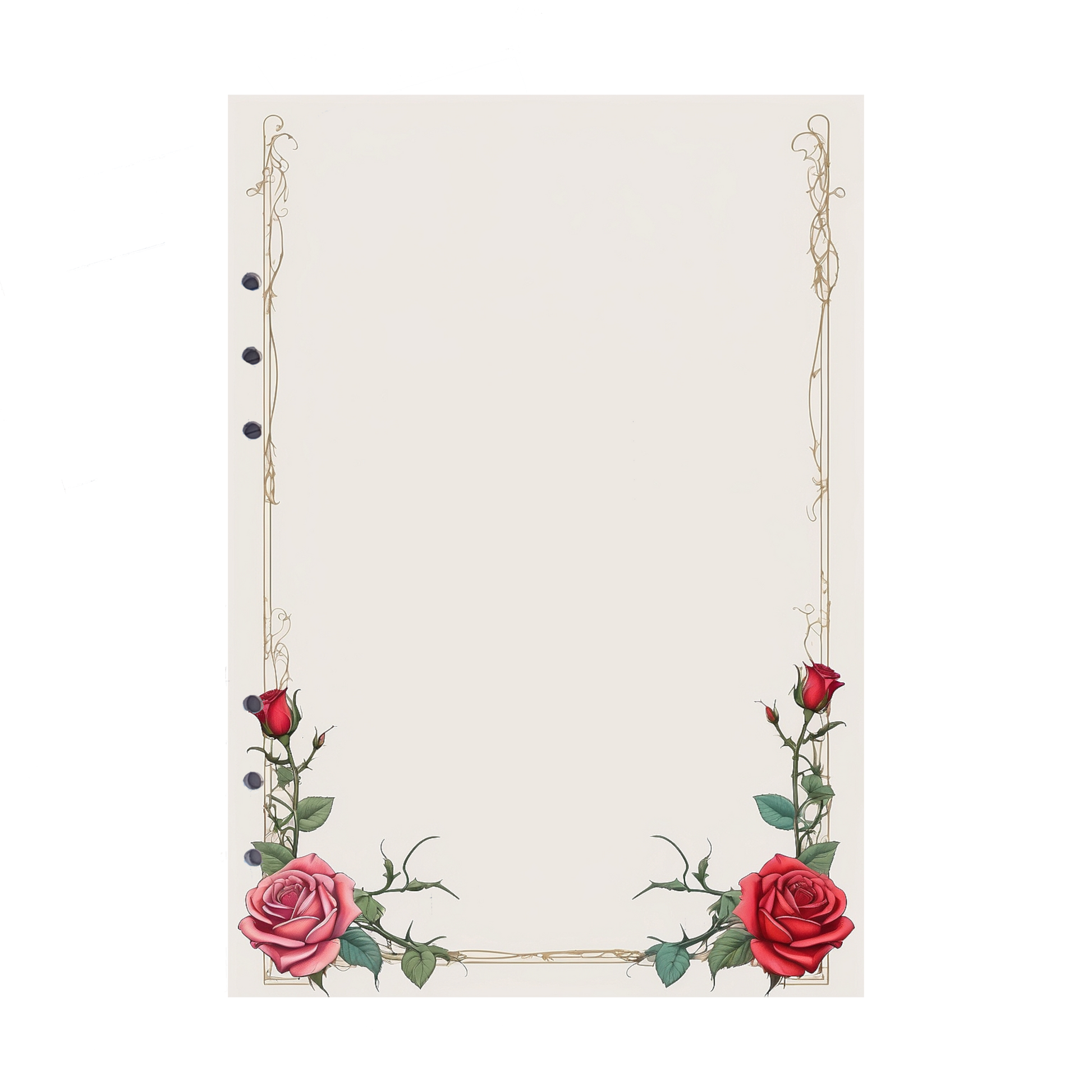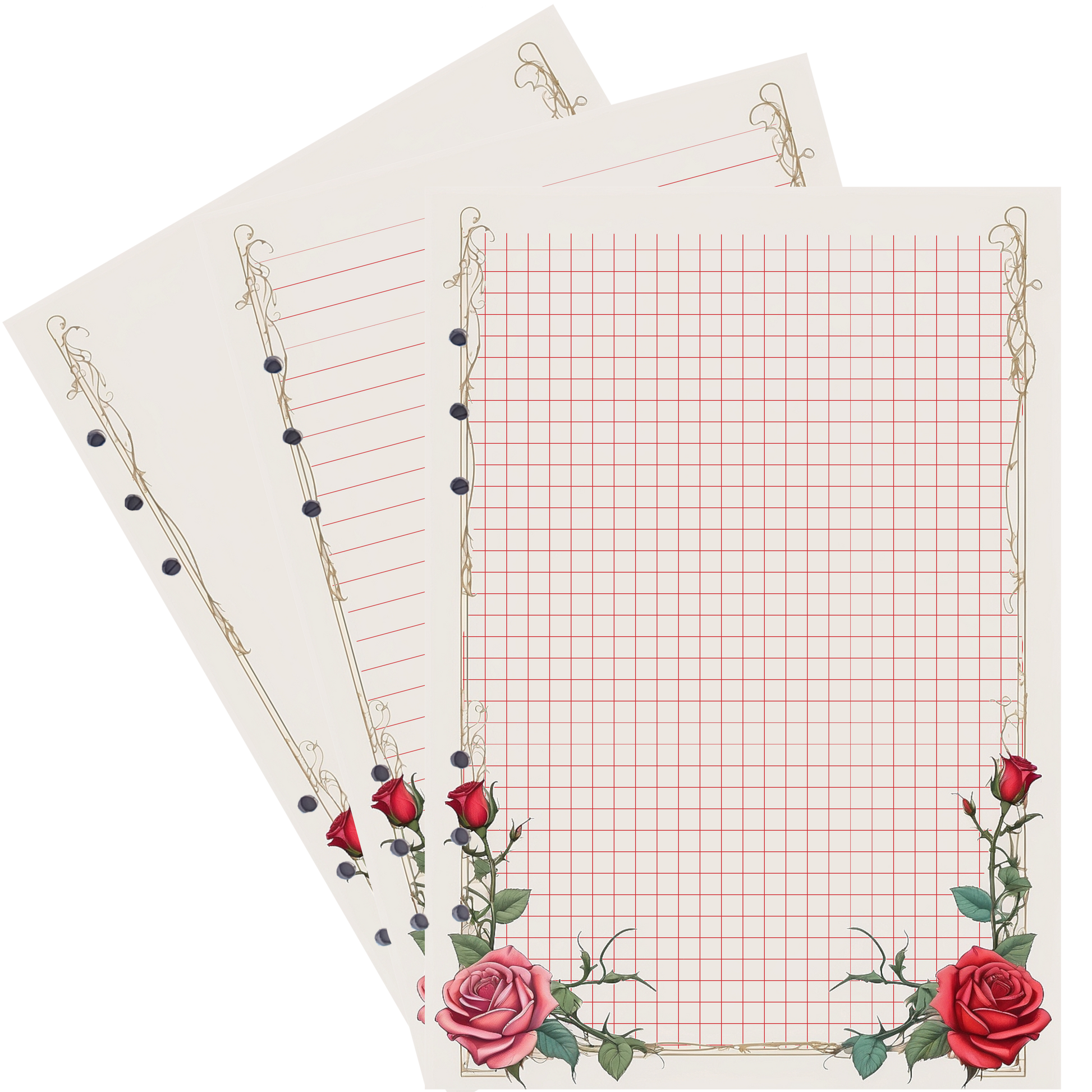 Erleben Sie die Schönheit der Natur mit unseren DIN A5 Nachfüllseiten im bezaubernden "Rose 2"-Design. Rosa und rote Rosen am unteren Rand der Seiten verleihen Ihren Notizen eine elegante Note und inspirieren zu neuen Ideen.