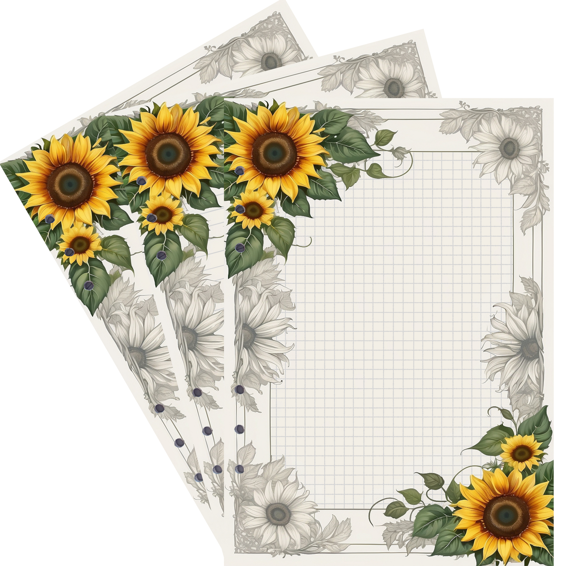 Wählen Sie aus einer Vielzahl bezaubernder Sunflower-Motive, die eine elegante Note und einen Hauch von Vintage-Stil in Ihre Notizen bringen.
