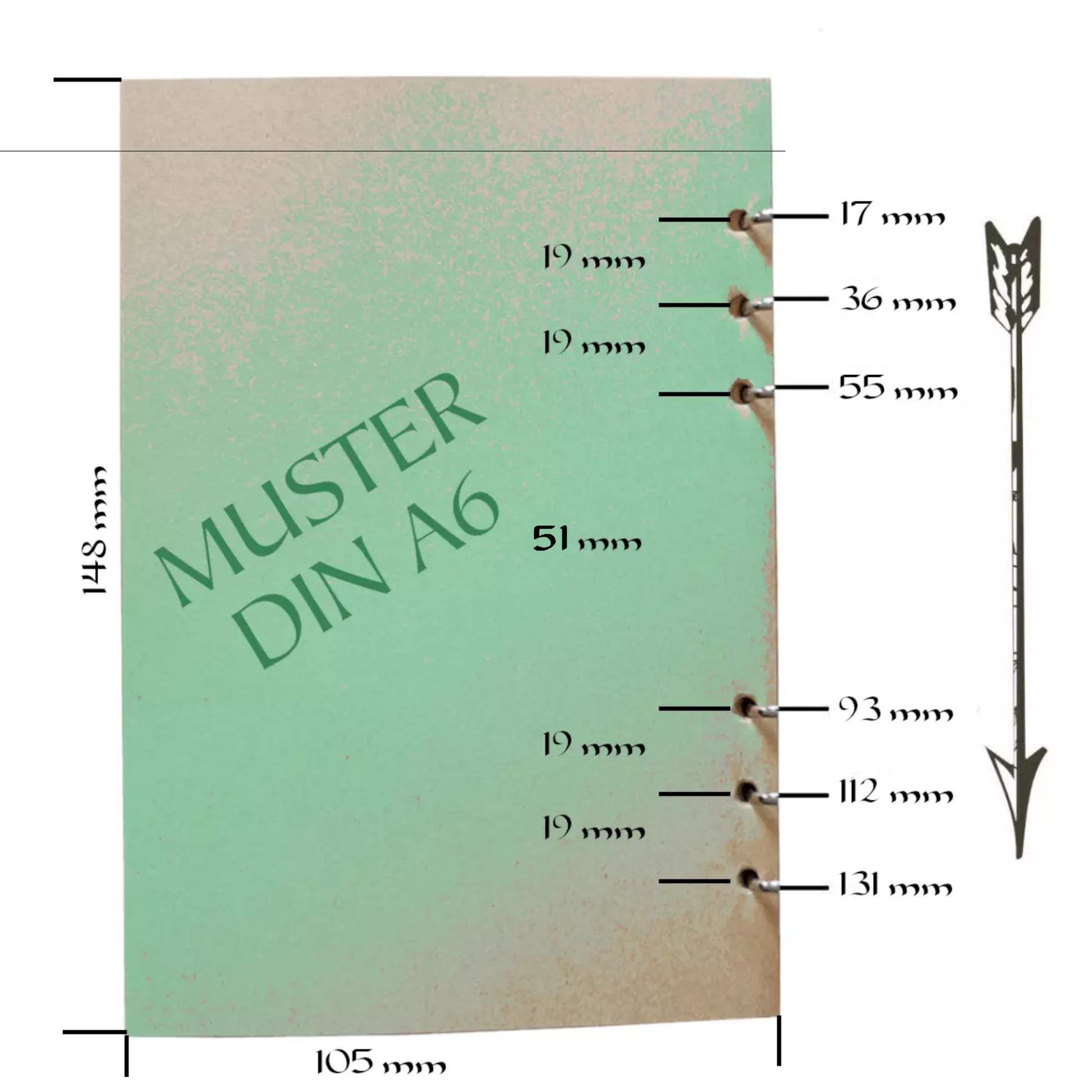 Gefertigt im DIN A6-Format mit 6-fach Lochung, passen die Seiten in alle gängigen Ringbücher. Die genauen Lochmaße entnehmen Sie bitte dem Muster in den Bildern.