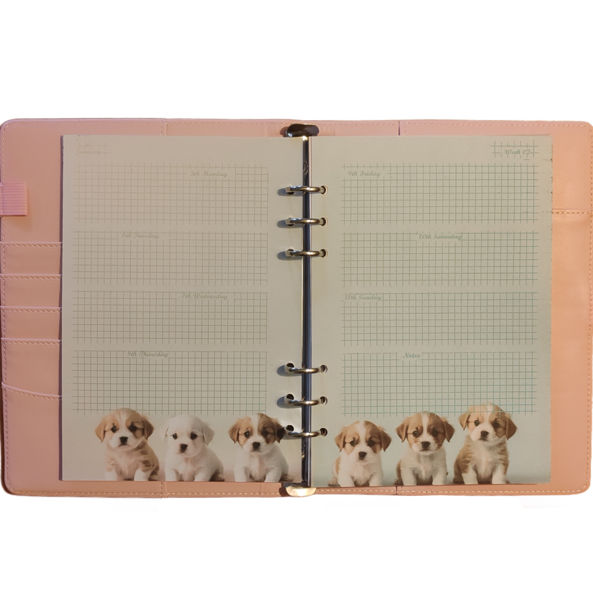 Jede Woche erstreckt sich über zwei Seiten und bietet genügend Platz für Termine, Aufgaben und persönliche Notizen. Das klare, freundliche Layout lässt Ihnen Raum – und begleitet Sie gleichzeitig mit Ihrem tierischen Motiv der Woche.