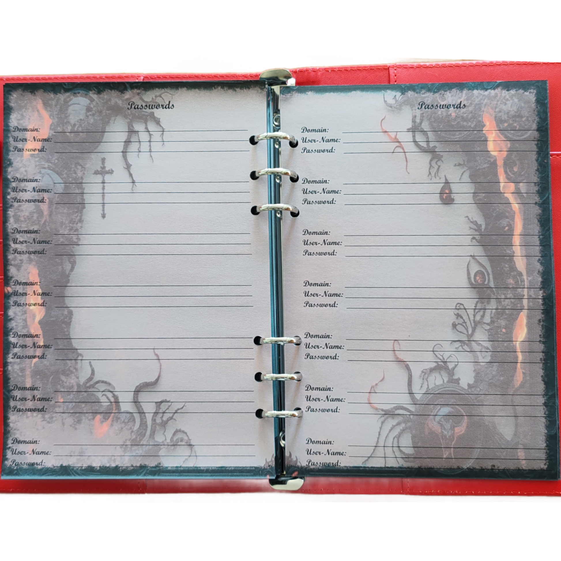 Design: Düster, okkult, schwarz-rot – inspiriert von Asche, Rosen und mystischen Symbolen
