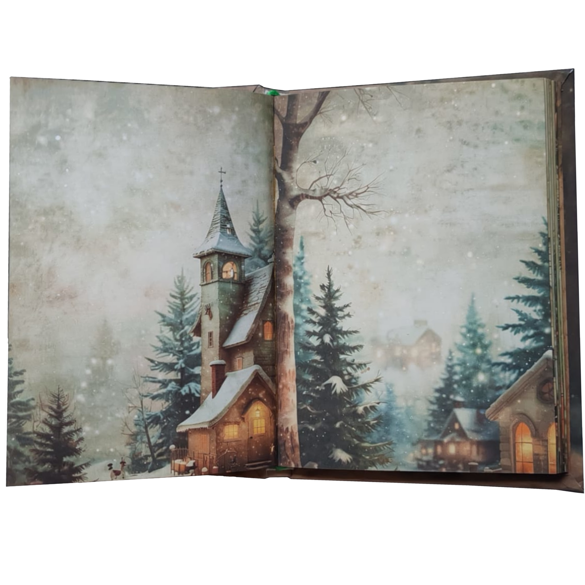 Dieses liebevoll gestaltete Notizbuch fängt die Magie vergangener Winter ein – eine Zeit voller handgeschriebener Briefe, knisternder Kaminwärme und zarter Schneeflocken, die sanft auf alte Dorfstraßen fallen. Jede Seite ist inspiriert von klassischen Weihnachtsillustrationen, Vintage-Farbtönen und der zeitlosen Eleganz vergangener Dezembertage.