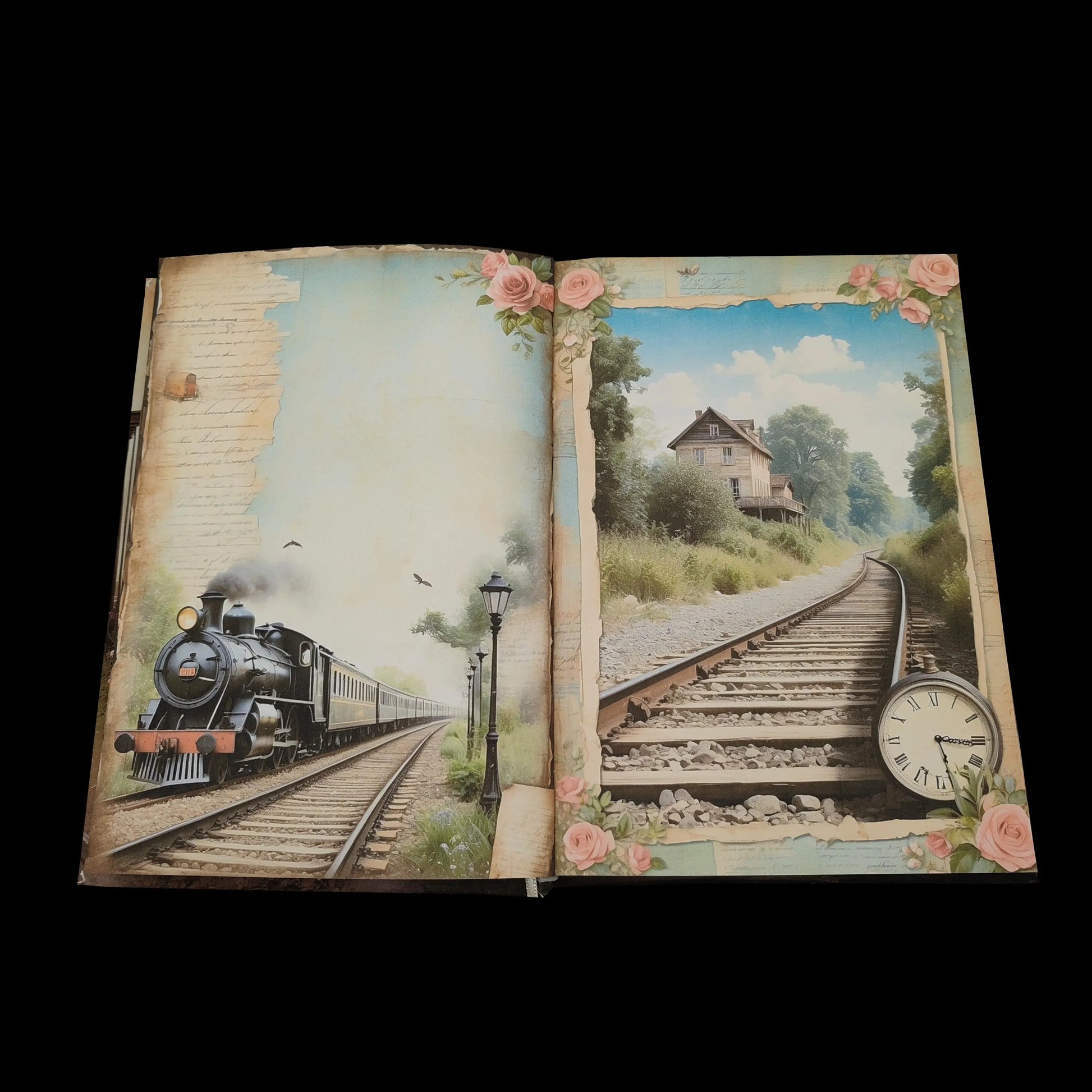 Tauchen Sie ein in die romantische Atmosphäre von "Railway Romance" – einem handgebundenen Notizbuch, das die Schönheit und den Charme der Eisenbahnreisen einfängt. Die Motive zeigen malerische Eisenbahnschienen, alte Züge und bezaubernde Landschaften, die eine romantische und inspirierende Atmosphäre schaffen.