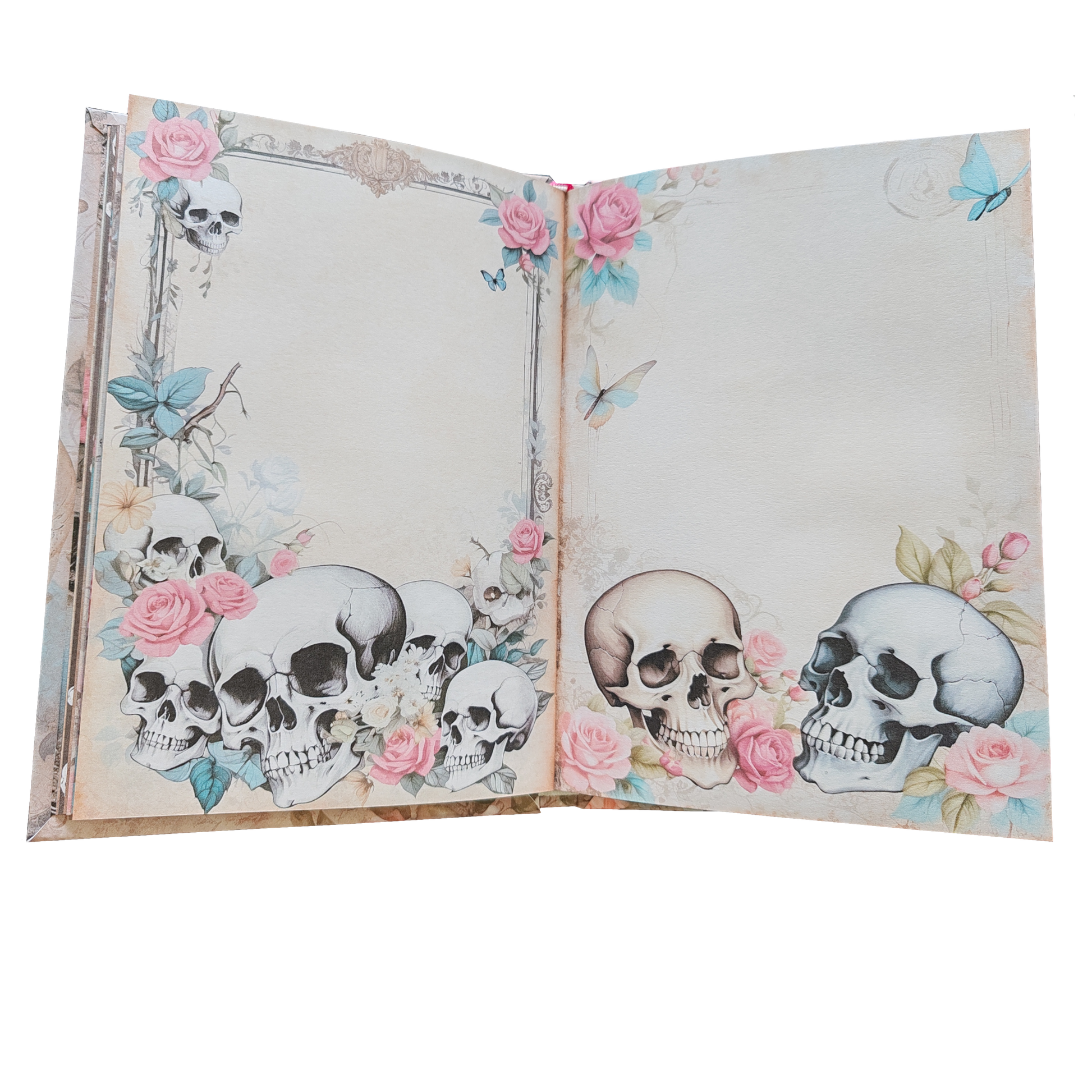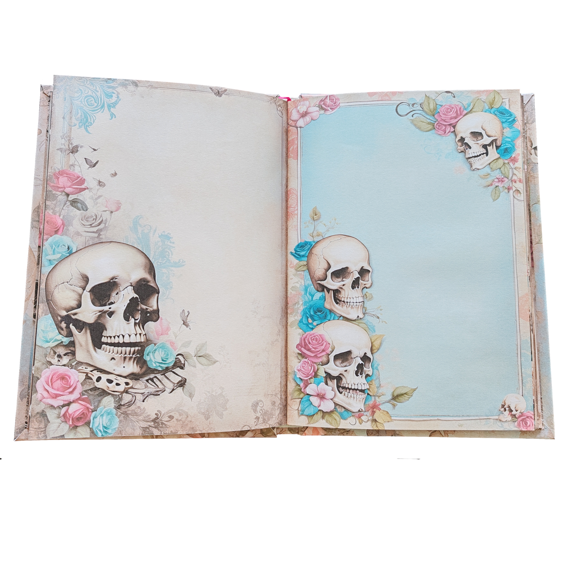 Erleben Sie den einzigartigen Charme von "Old Skull", einem Notizbuch, das bunte, fröhliche und schrille Totenköpfe im Old School Look einfängt. Diese handgebundene Kreation kombiniert lebhafte Farben und klassische Designs zu einem unverwechselbaren Kunstwerk, das Ihre Kreativität anregt und Ihre Gedanken auf faszinierende Weise festhält.