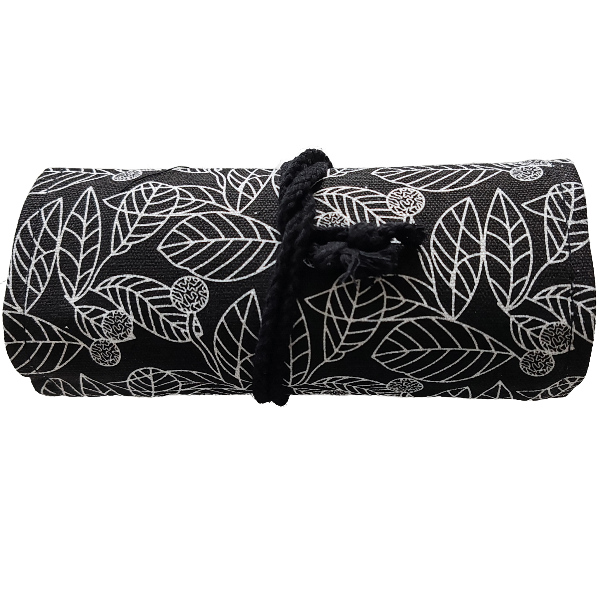 Federmäppchen | Laubblätter-Design | Canvas | 48 Stiftplätze | Einrollbar