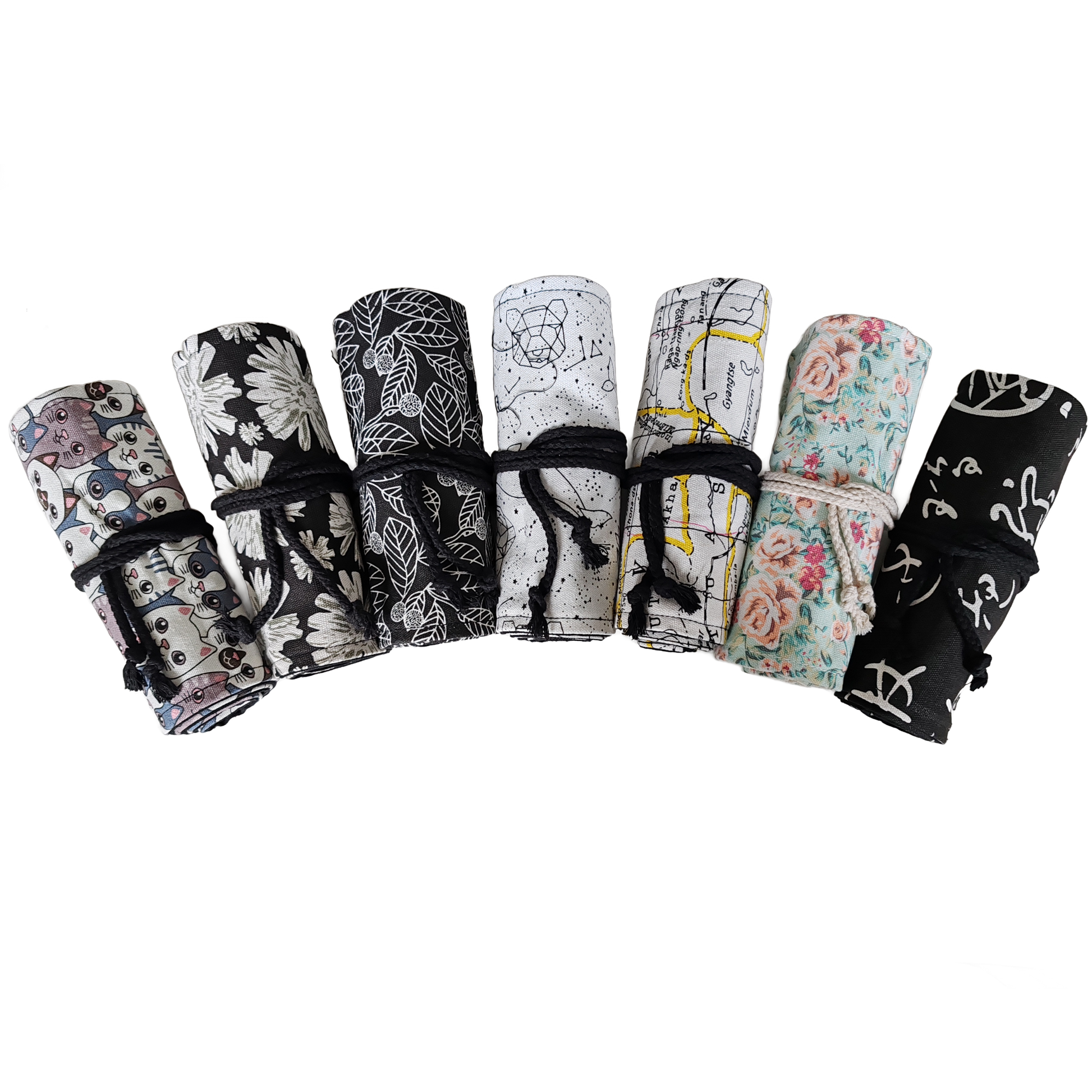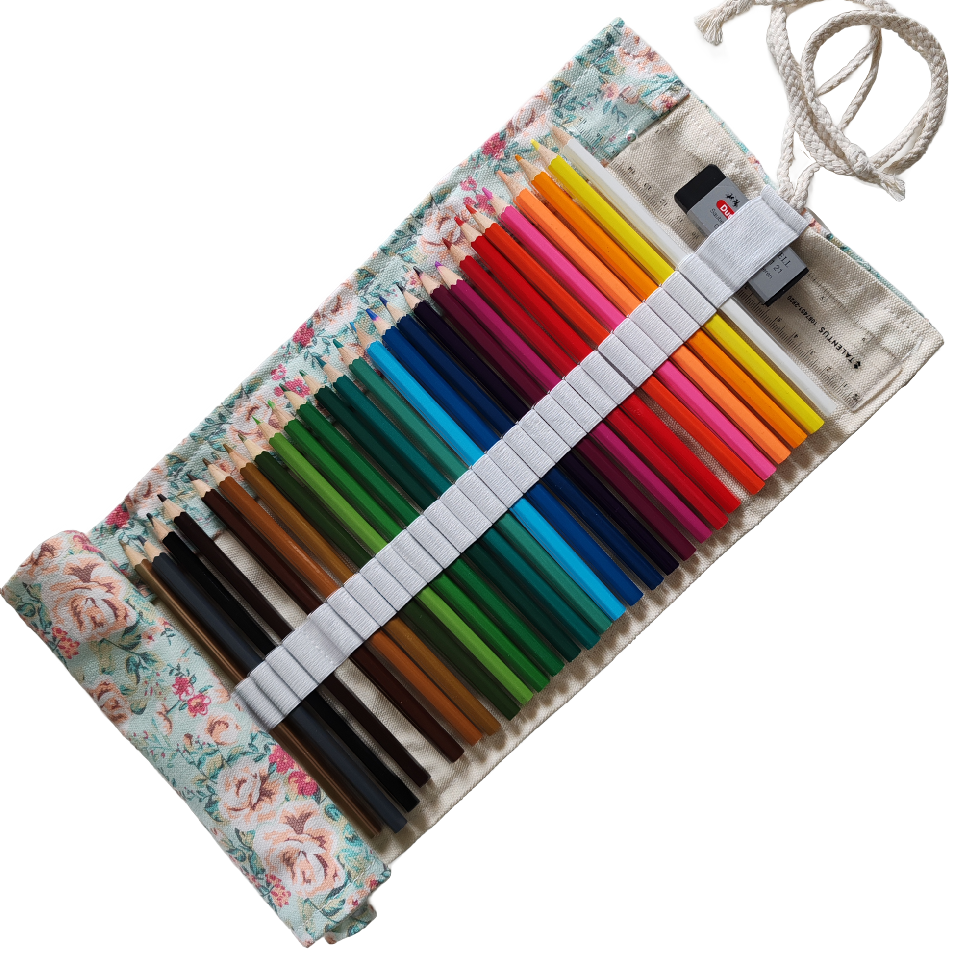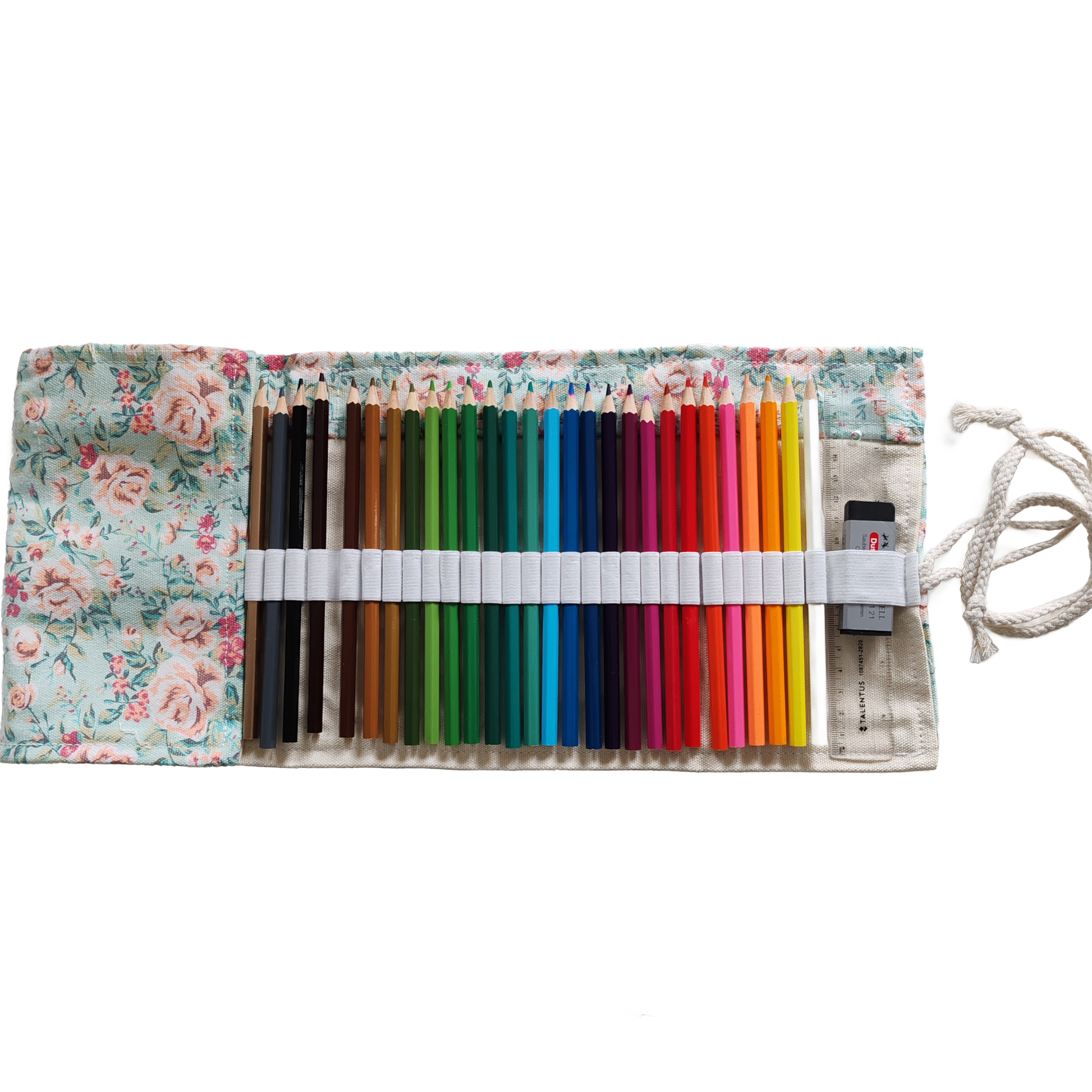 Federmäppchen | Vintage-Blumen-Design | Canvas | 48 Stiftplätze | Einrollbar