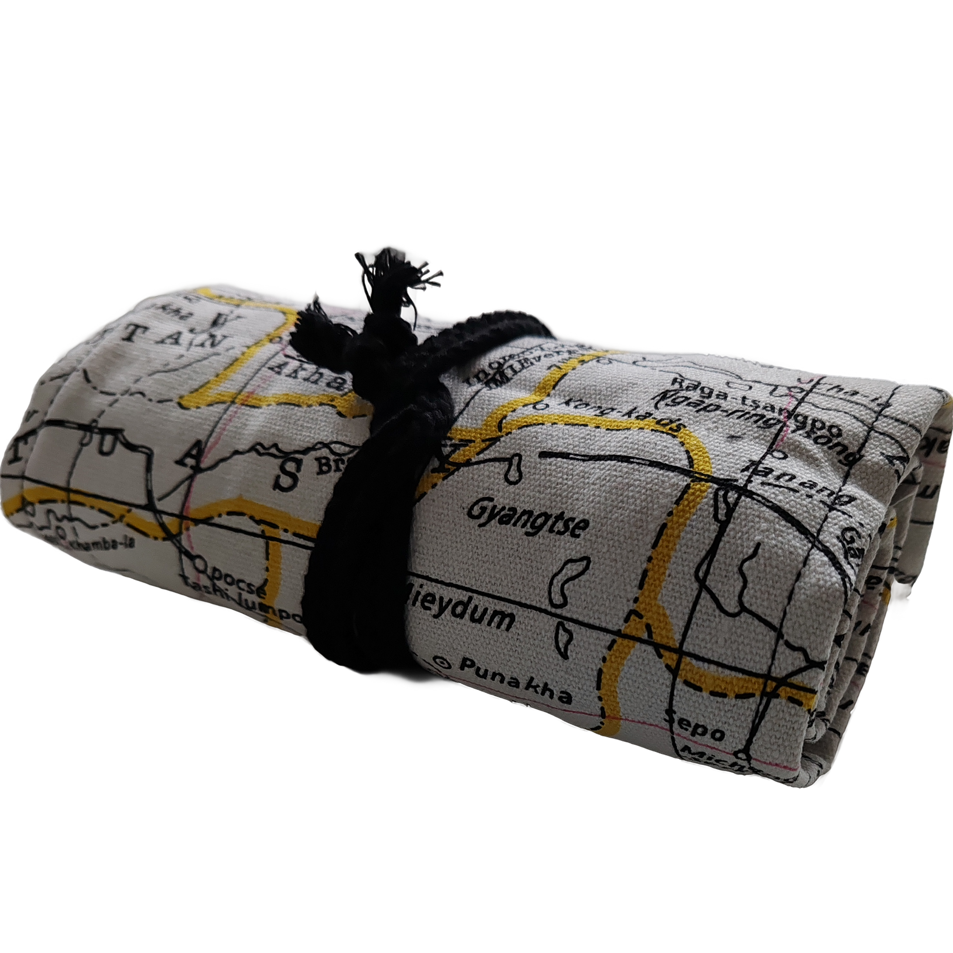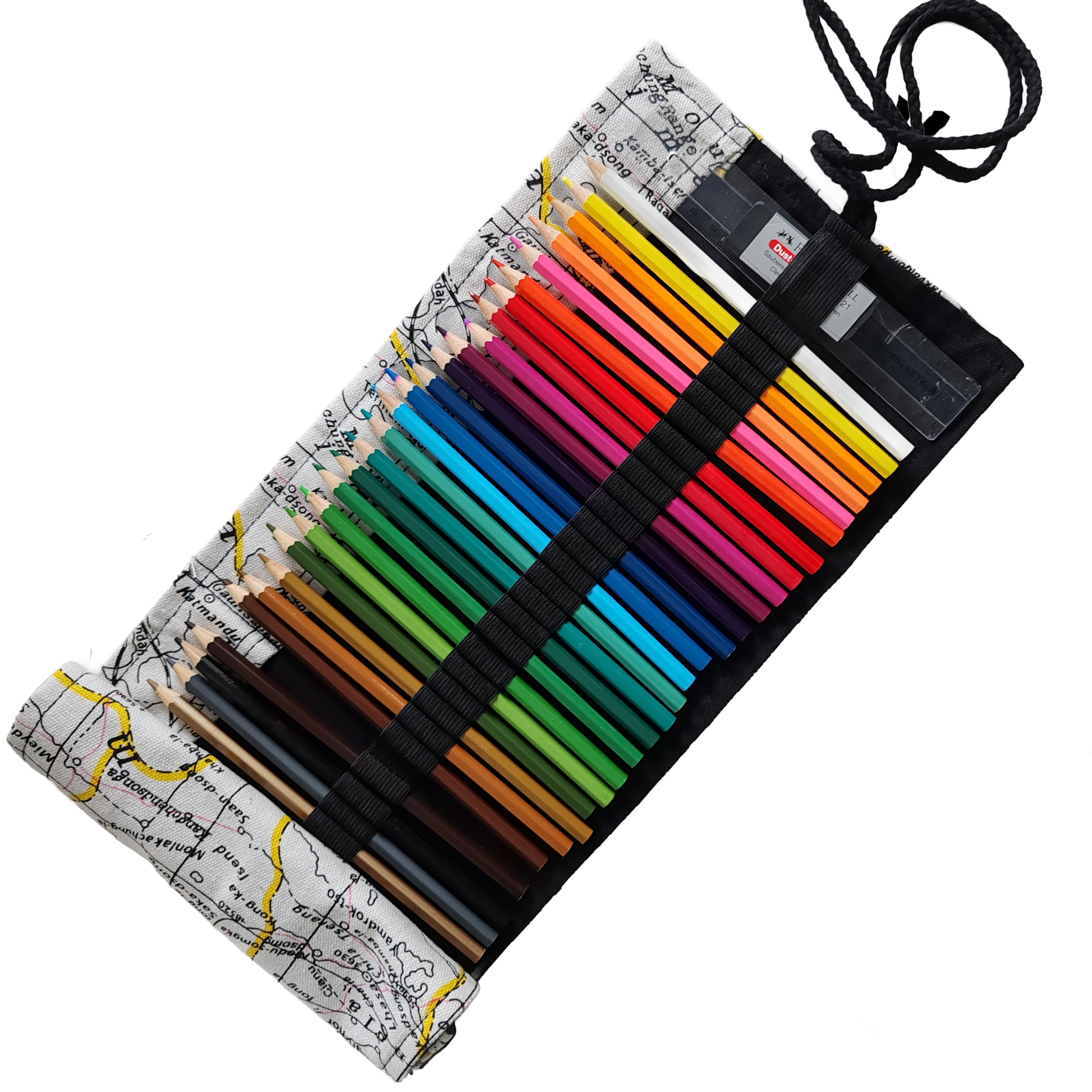 Federmäppchen | Weltkarten-Design | Canvas | 48 Stiftplätze | Einrollbar