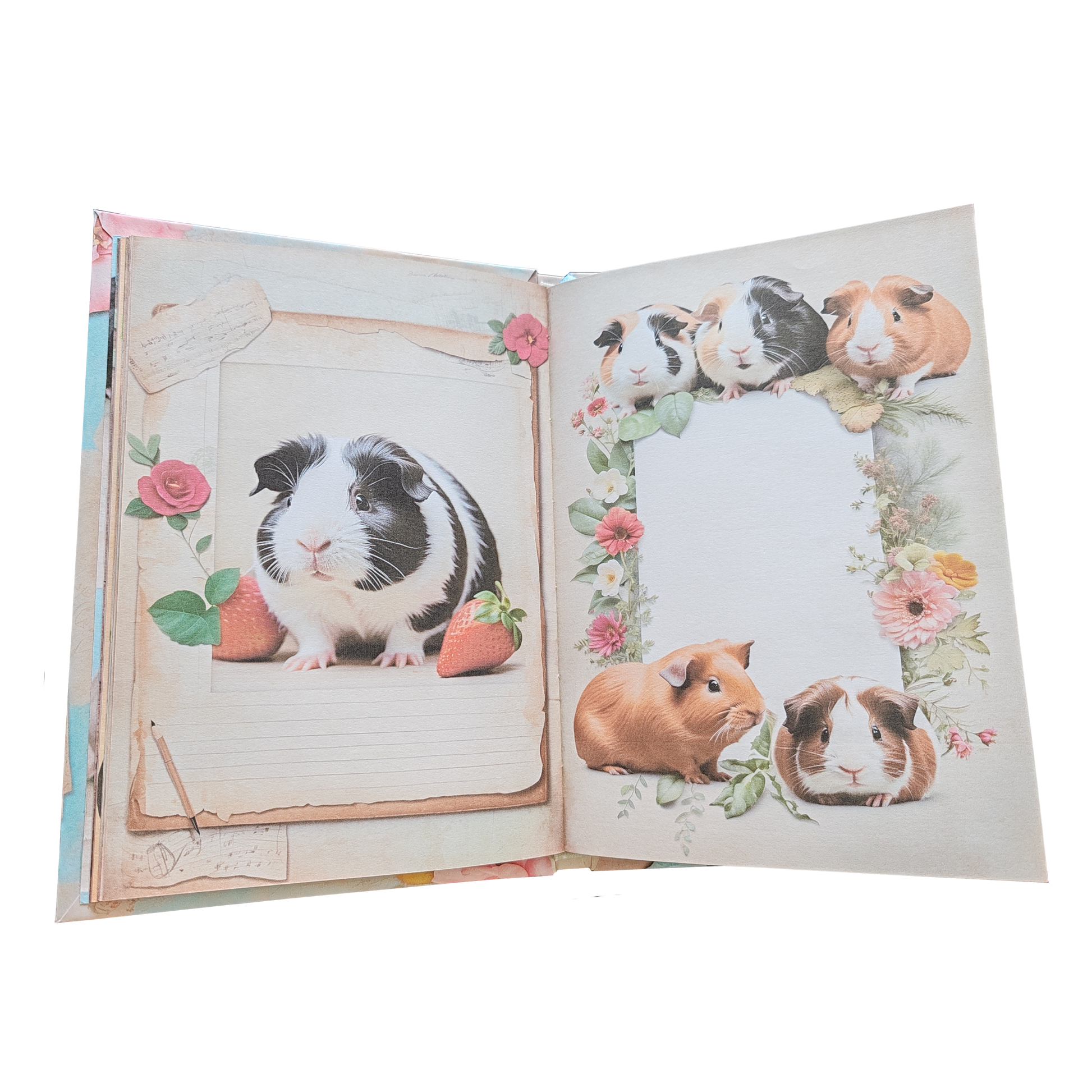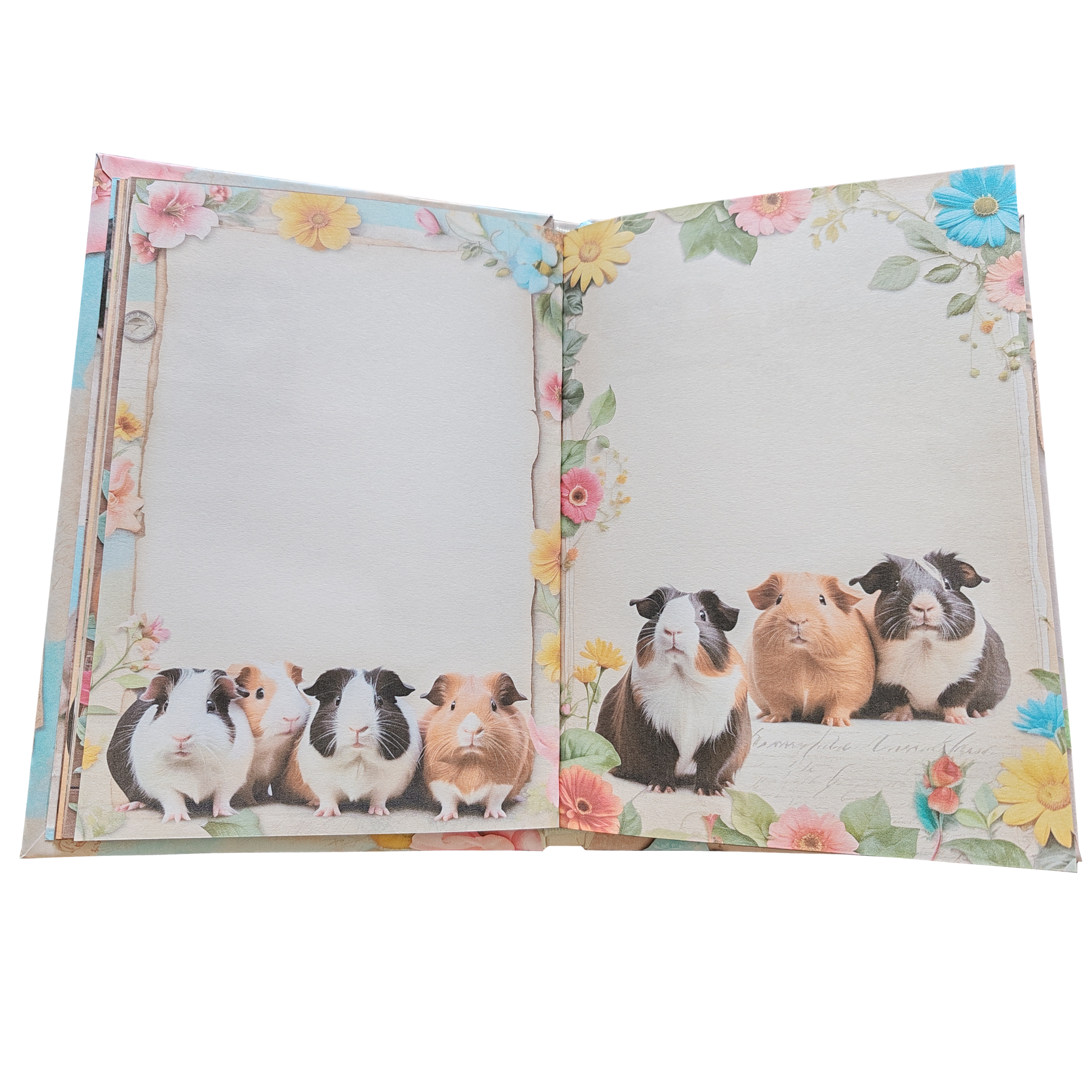 Tauchen Sie ein in die bezaubernde Welt von "Sweet Guinea Pigs", einem Notizbuch, das die niedlichen Abenteuer und den Alltag von Meerschweinchen in liebevollen Illustrationen festhält. Dieses handgebundene Notizbuch ist eine Freude für jeden Tierliebhaber und Kreativen, der sich von der liebenswerten und fröhlichen Natur dieser kleinen Nager inspirieren lassen möchte.