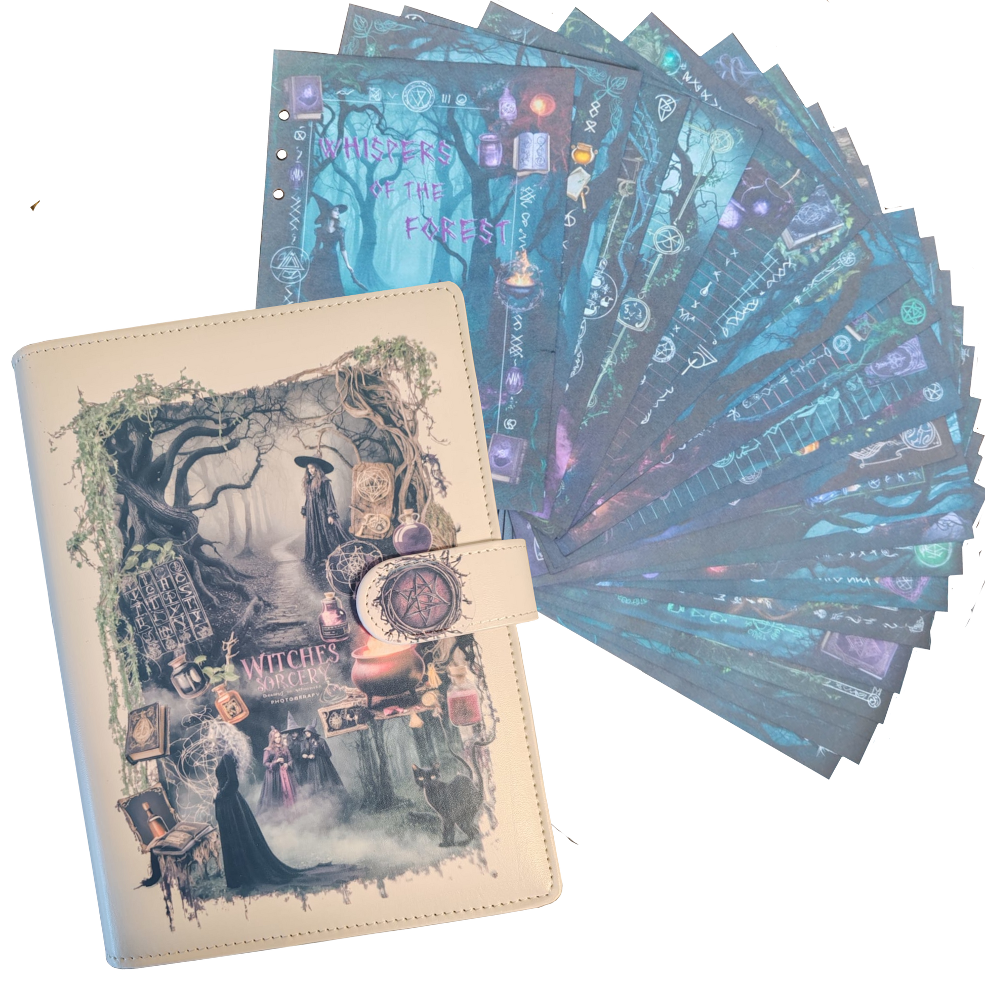 Entdecken Sie die geheimnisvolle Welt der Hexenkunst mit dem „Whispers of the Forest“ DIN A5 Set – ein mystisches Ensemble, das dunkle Ringbucheinlagen und ein passendes Ringbuch vereint. Dieses Set ist perfekt für alle, die sich von der Magie des Waldes und den uralten Ritualen der Hexenwelt verzaubern lassen möchten.